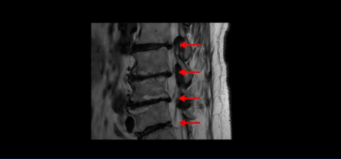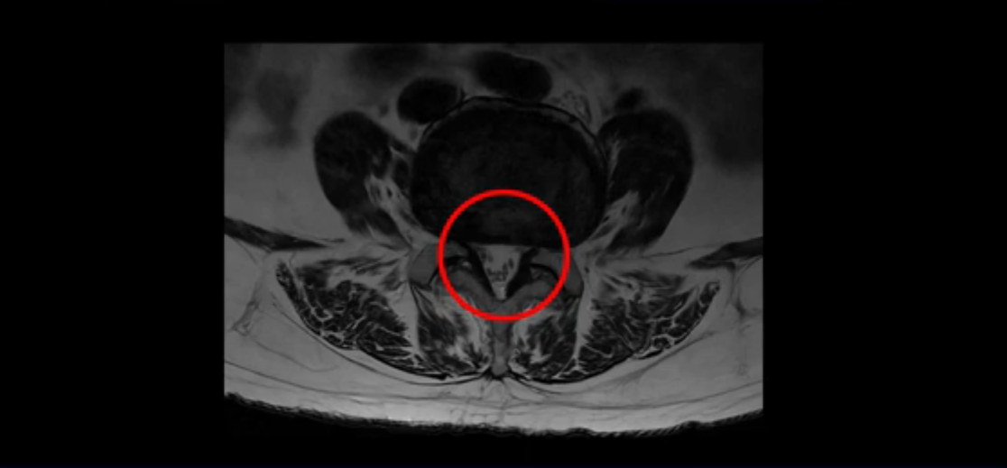 이 환자분 얘기 잘 들으셨습니까? 먼저 이분 MRI를 보면서 설명해드린 후 신경이 눌리는 협착증 환자분을 어떻게 수술 없이 치료할 수 있는지 자세히 설명 드리겠습니다.
