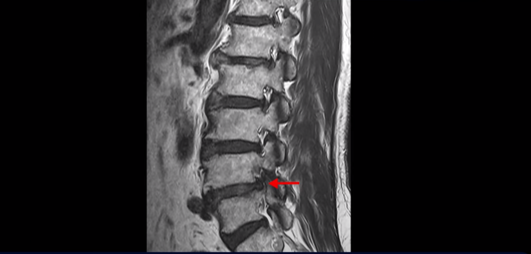 먼저 이분 MRI를 보면서 간단히 설명드린 후 어떻게 신경이 눌려서 반드시 수술해야 한다는 환자나 이 환자분처럼 수술이 필요하지만 나이가 많아서 못한다고 하는 환자분을 수술 없이 치료할 수 있는지 또 치료는 어떻게 하는지 자세히 설명드리겠습니다.