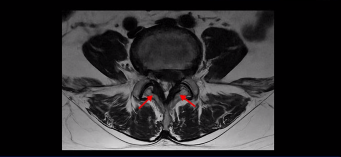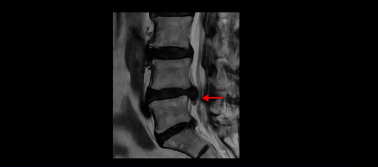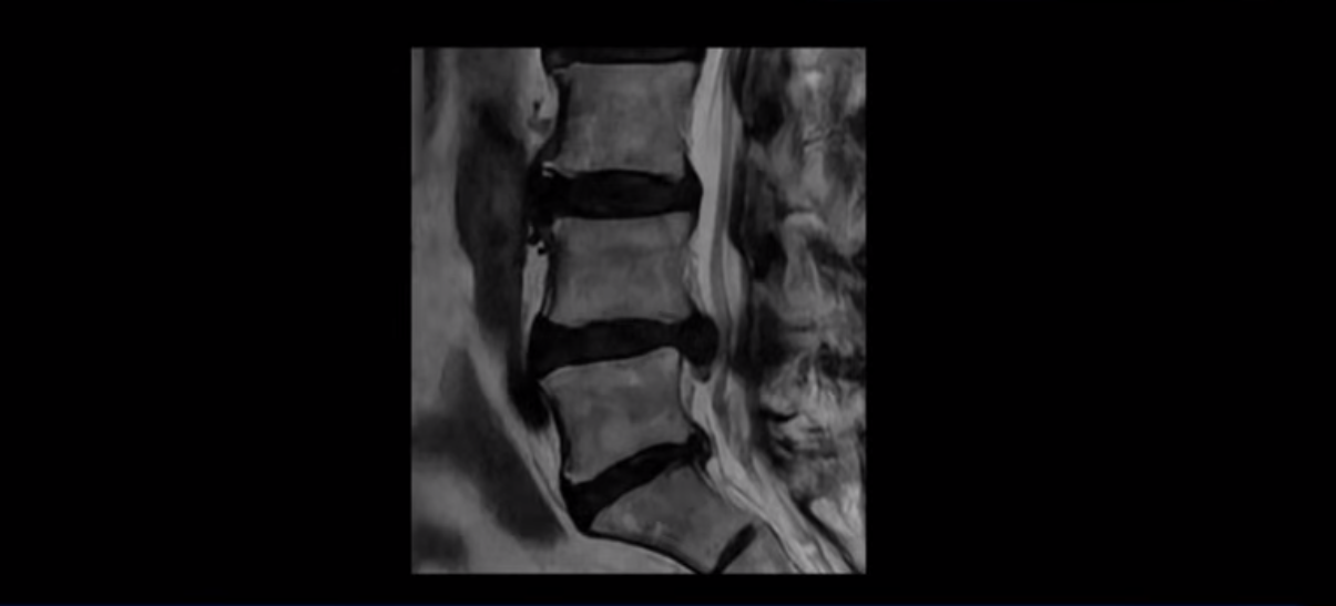 이분 MRI를 먼저 보실까요. 보시다시피 척추 여러 마디가 퇴행되어 있고