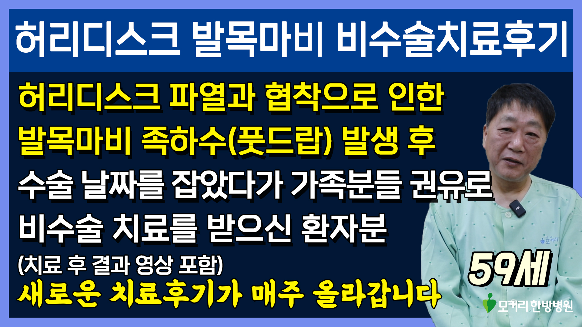 이분 MRI를 보면서 간단히 설명 드린 후 어떻게 허리에서 신경이 눌려서 발목이 마비된 환자가 수술 없이 치료가 될 수 있는 건지, 또 치료는 구체적으로 어떻게 하는 건지 자세히 설명 드리겠습니다.