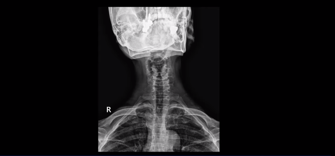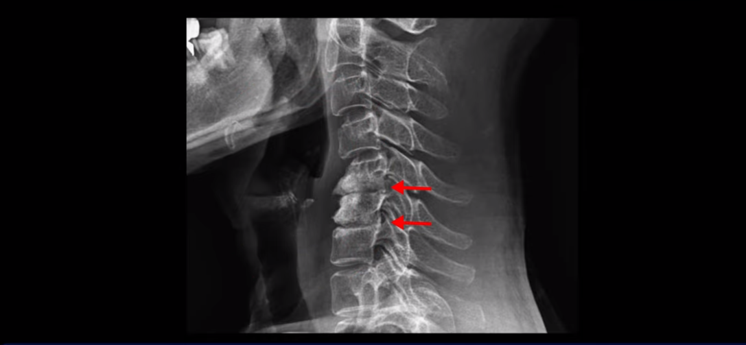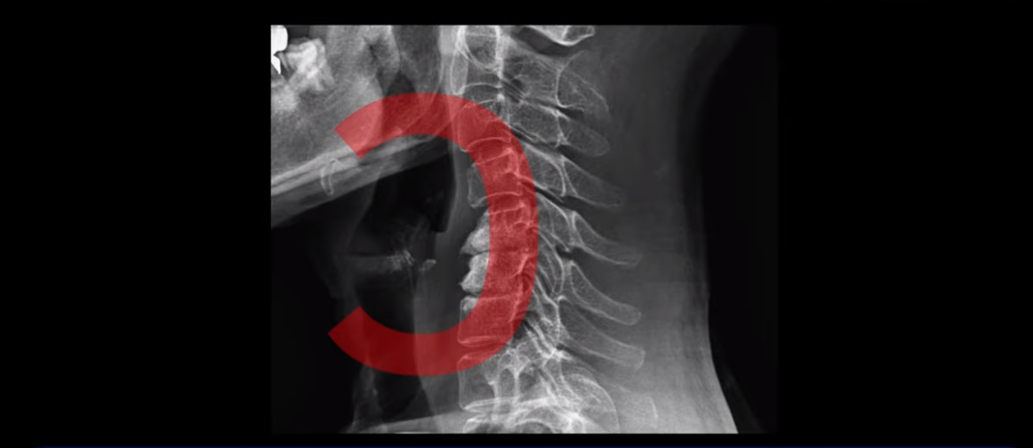이분 목 X-ray를 보면 역C자형의 목에 전방전위도 보이고,