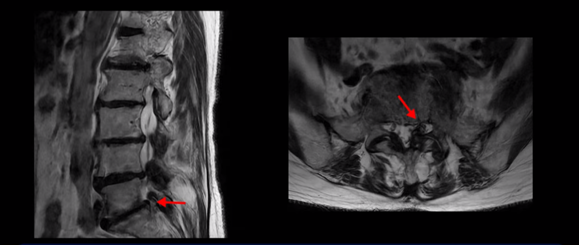 그래서 왼쪽 엉덩이와 다리 통증이 더 심합니다. 이렇게 신경 구멍들이 좁아져 있고 신경이 눌리니까 엉덩이와 다리가 너무 저리고 아프고 힘도 빠져서 몇 걸음도 걷기 어려우니까 지팡이를 짚고 저녁에도 아파서 잠을 못 자는 겁니다.