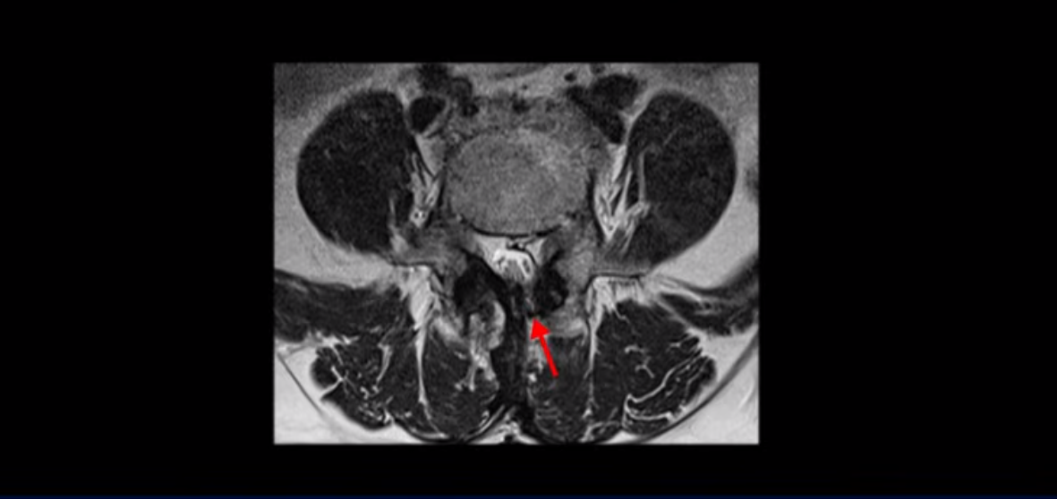 이 환자분은 협착증 수술을 두 번 받은 뒤에 또 다시 다리 방사통이 심해지고 발목 마비 증상(풋드랍)이 생겨서 이번에는 유합술을 권유받은 환자분입니다. 먼저 MRI를 보고 설명해 드린 후 이런 환자분의 방사통과 발목의 마비와 힘 빠짐이 어떻게 수술 없이도 좋아질 수 있는지 그리고 치료는 어떻게 하는지 자세히 설명드리겠습니다.